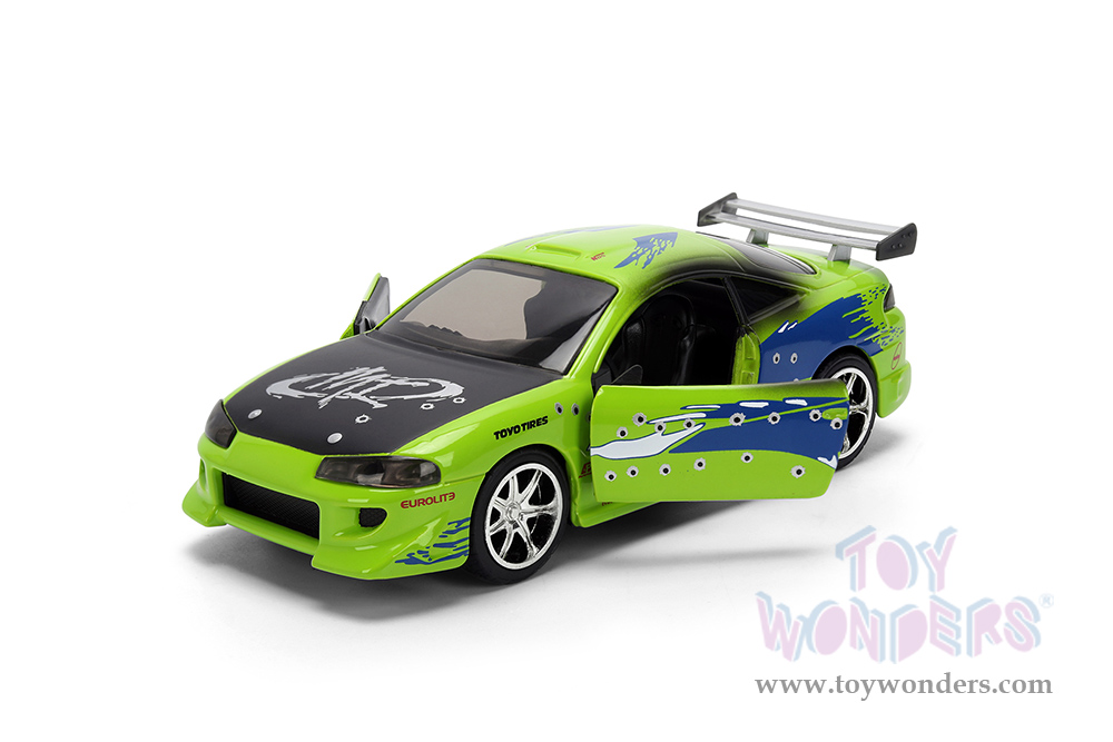 Jada Toys Fast & Furious - Brian's Mitsubishi Eclipse Damaged Version (1/32 scale diecast model car, Glossy Green) 36356