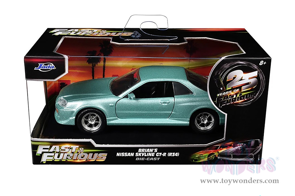 Jada Toys Fast & Furious - Brian's Nissan Skyline GT-R (R34) (1/32 scale diecast model car, Turquoise) 32586