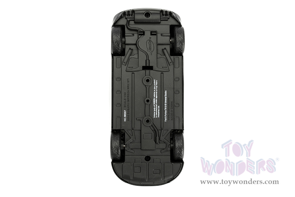 98507 Jada Toys Fast & Furious - Brian's Subaru Impreza WRX STI F8 "The Fate of the Furious" Movie (2017). 1:32 scale diecast collectible model car. This Subaru is a 5"L x 2"W x 2"H diecast metal car. Motorized pull back action with openable doors. The Brian's Subaru Impreza is manufactured by Jada Toys. Collector's Diecast Series. Individually packed in a window box. Window Box size:  6"L x 3"W x 4.5"H. Item 98507 is in Silver with Gray color. 12 pcs per inner box.