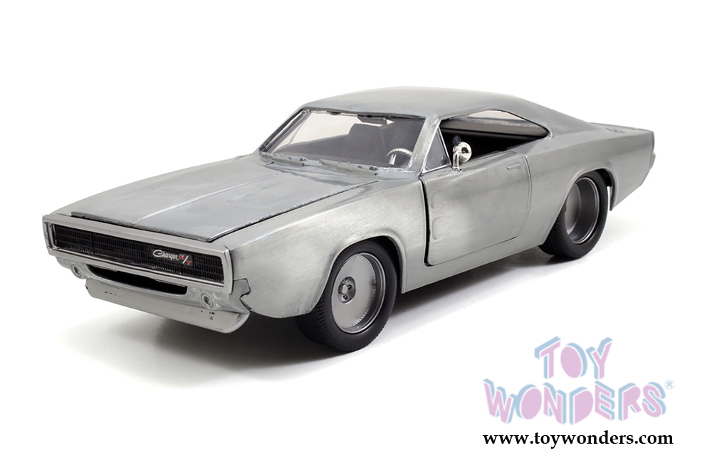 97370 Jada Toys Fast & Furious - 1968 Dom's Dodge Charger R/T Hardtop. 1:24 scale diecast collectible model car. This Dodge Charger R/T is an 8.5"L x 3.5"W x 2.5"H diecast metal car. Freewheeling with openable hood, trunk, and doors. The Dodge Charger R/T is manufactured by Jada Toys. 4 pcs per display box in BARE METAL color. 16 pcs per inner.