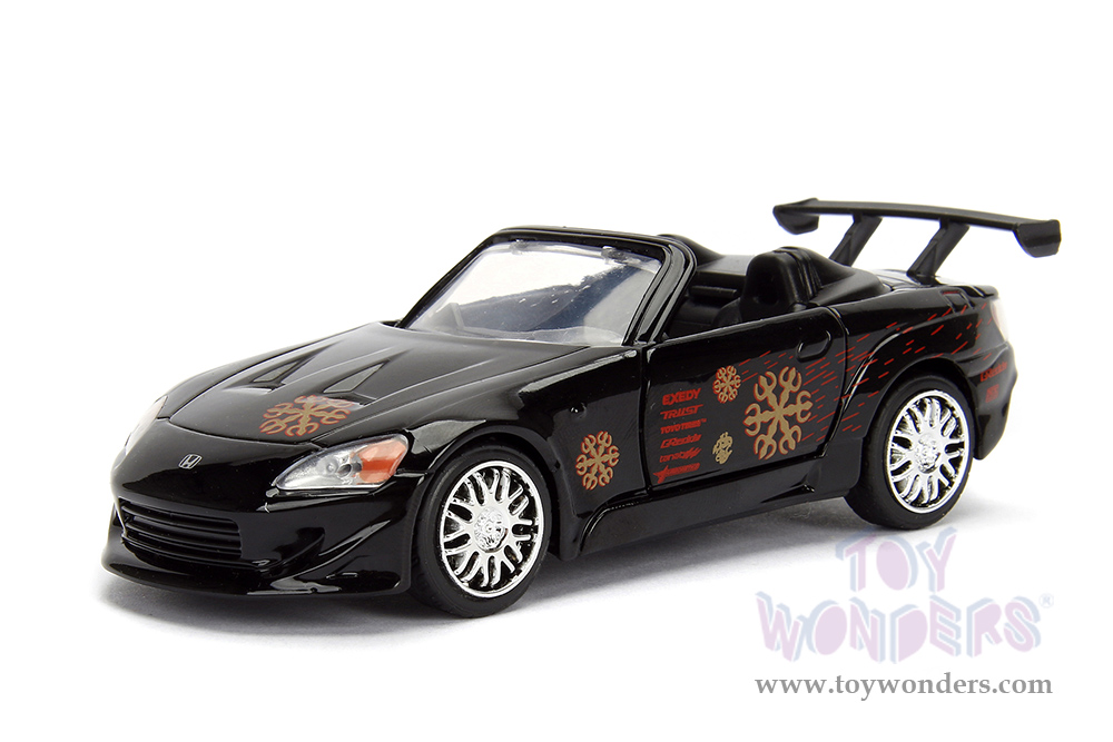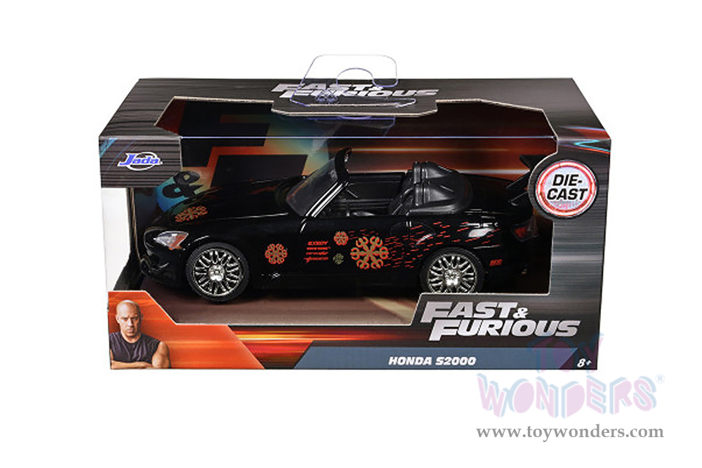 99543/24 Jada Toys Fast & Furious - Johnny's Honda S2000 Convertible. 1:32 scale diecast collectible model car. This Honda is 5"L x 2"W x 1.75"H diecast classic muscle cars from the Fast & Furious movie. Openable doors. This Honda S2000 is manufactured by Jada Toys. It comes individually packed in a window box. Window box is 6"L x 3"W x 3"H. Item 99543/24 is in black.