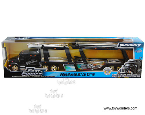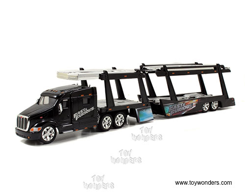 Jada Toys Fast & Furious - Peterbilt Model 387 Car Carrier Tractor Trailer (1/64 scale diecast model car, Black) 97071