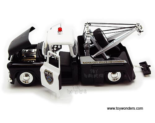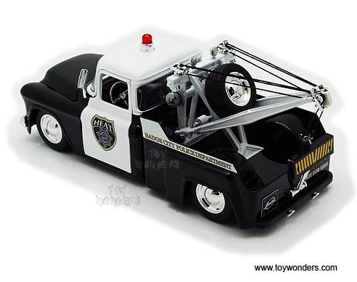 Jada Toys Heat - Chevy Stepside Police Tow Truck (1955, 1/24 scale diecast model car, Black & White) 96394