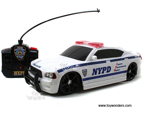 84114W1 Jada Toys Heat - R/C 2006 Dodge Charger NYPD Police Car with Light & Sound. 1:16 scale radio controlled with batteries ready-to-run. These radio controlled car are manufactured by Jada Toys. 84114W1 New York Police Department car is in WHITE color.