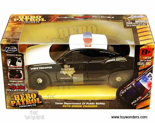 Jada Toys Hero Patrol - Dodge Charger Texas Police Department (2010, 1/32 scale diecast model car, Black & White) 96343TX