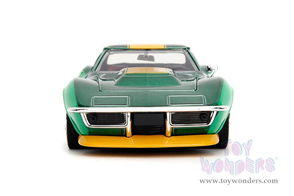 Jada Toys - Hollywood Rides | Chevrolet® Corvette™ with Cammy Diecast Figure "Street Fighter" (1969, 1/24, diecast model car, Green/Yellow stripe) 30837