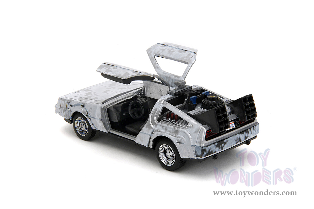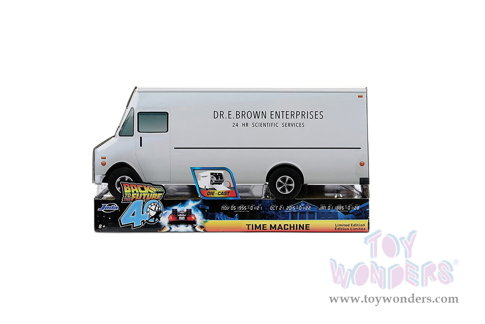 Jada Toys - Hollywood Rides | DeLorean DMC (Time Machine) "Back to the Future" with Dr. E. Brown's Enterprise truck 40th Anniversary Special Packaging (1/32 scale diecast model car, Frost Brush Metal) 36848