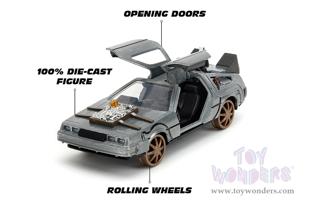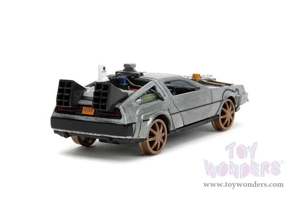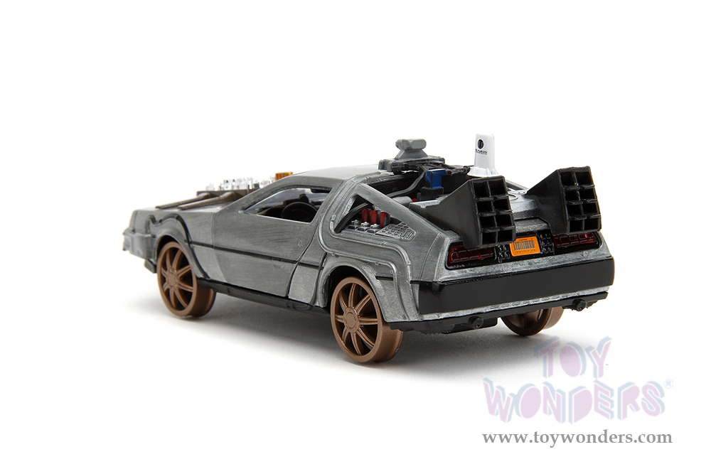 Jada Toys - Hollywood Rides | DeLorean DMC (Time Machine) Train Wheel Version "Back to the Future Part III" (1990) Movie (1/32 scale diecast model car, Brush Metal) 34786
