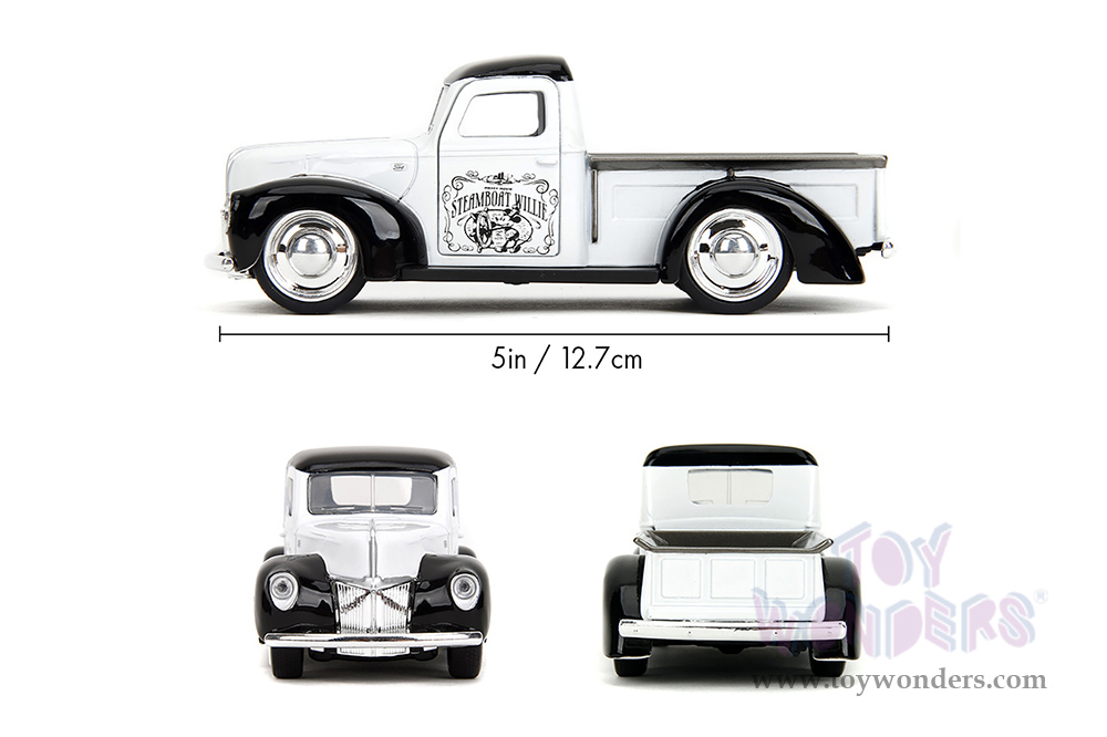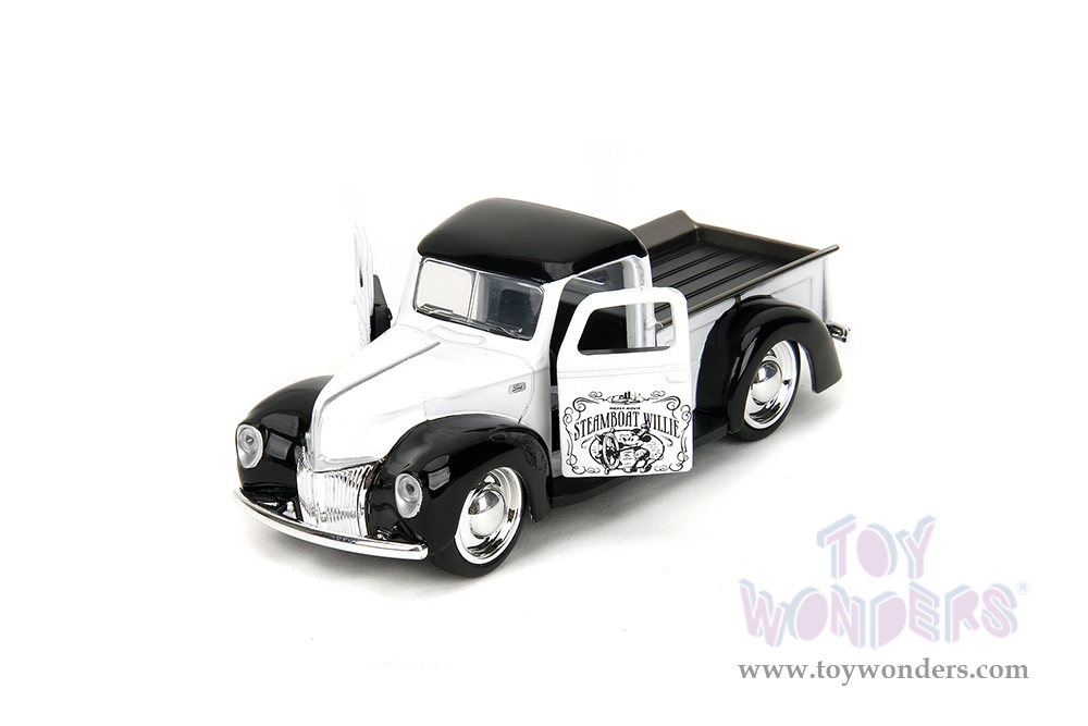 Jada Toys - Hollywood Rides | Disney Mickey Mouse Ford Pickup - Steamboat Willie Theme (1941, 1/32 scale diecast model car, Black/White) 36091