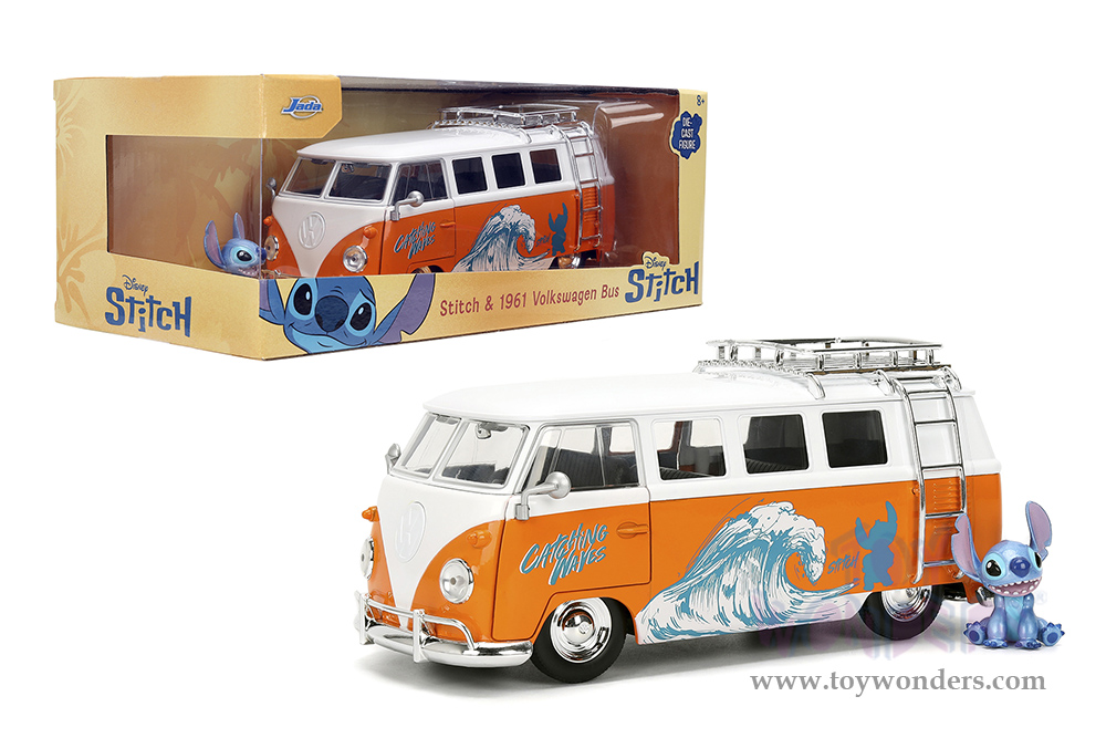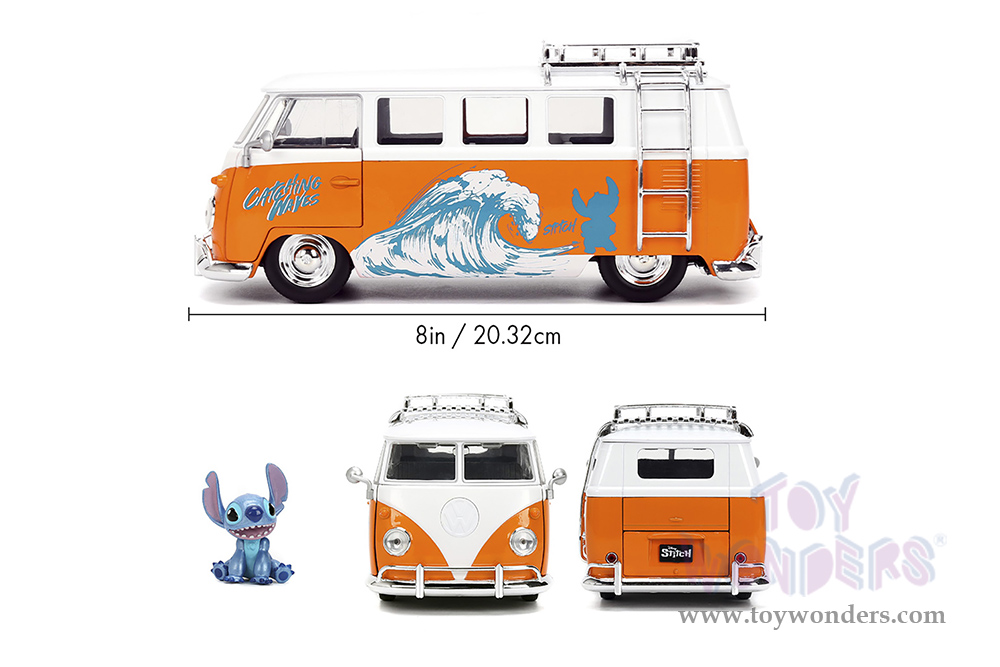 Jada Toys - Hollywood Rides | Disney Stitch Volkswagen Bus with Stitch Diecast Figure (1961, 1/24, diecast model car, Orange/White) 36340