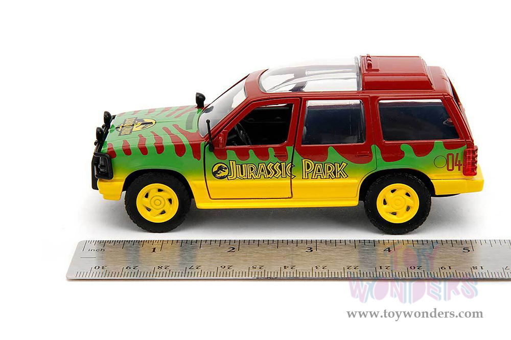 Jada Toys - Hollywood Rides | Ford Explorer "Jurassic Park" (1993) Movie 30th Anniversary (1/32 scale diecast model car, Red/Yellow/Green) 31956/24