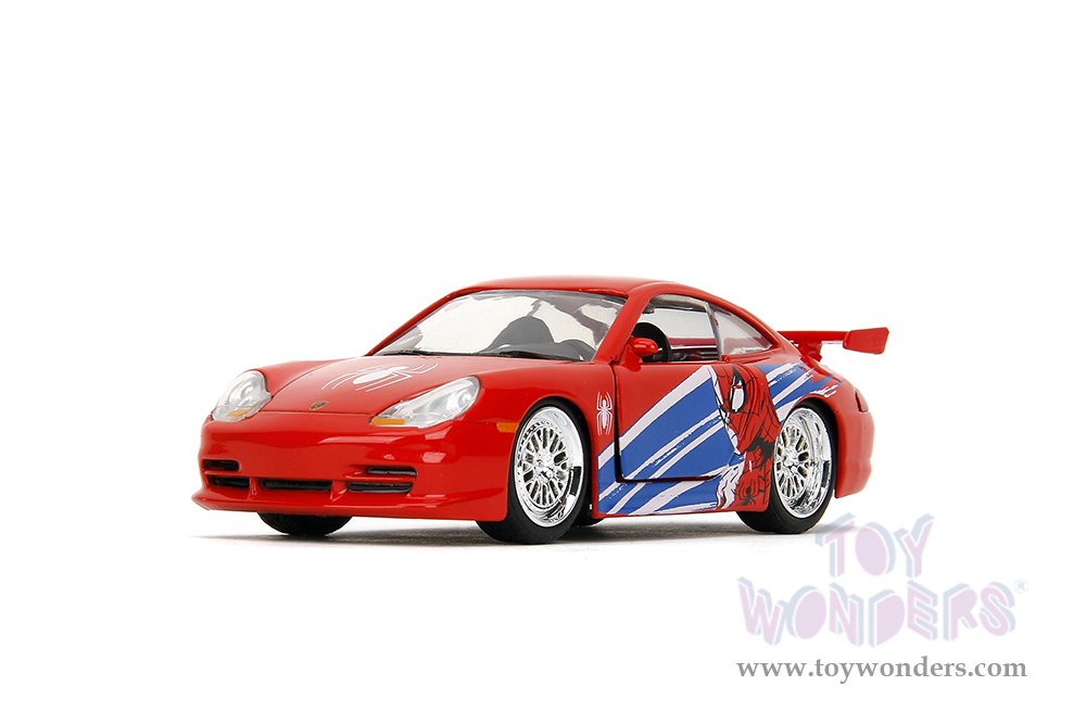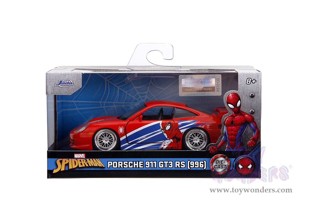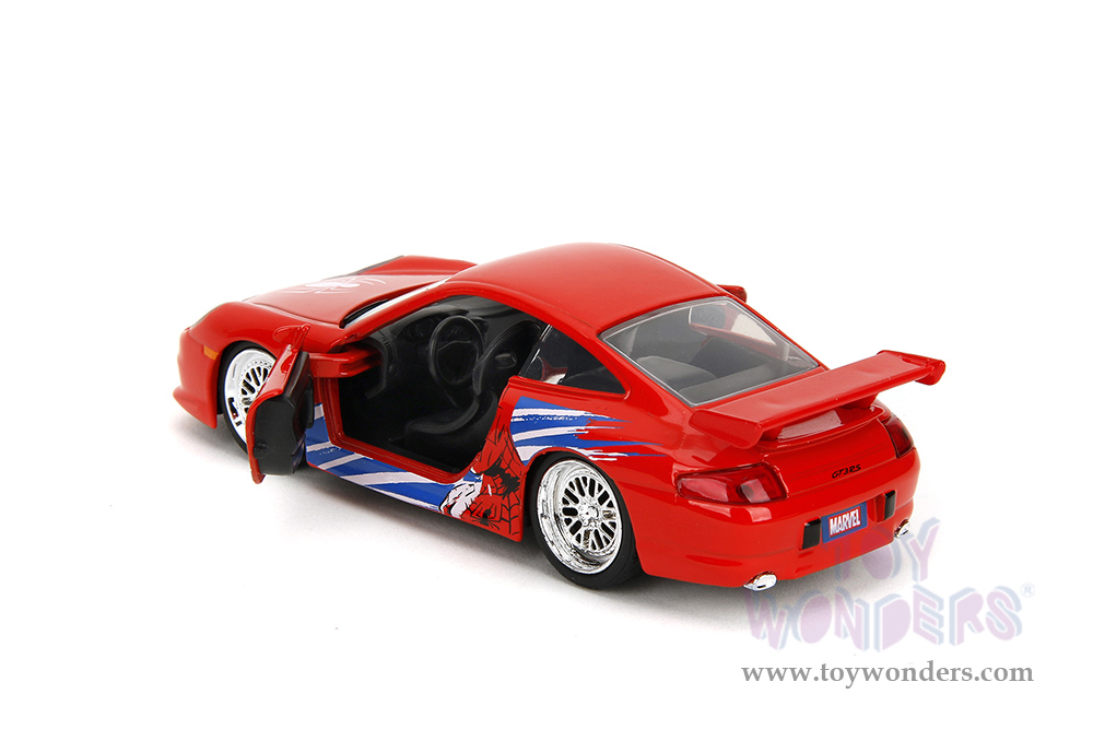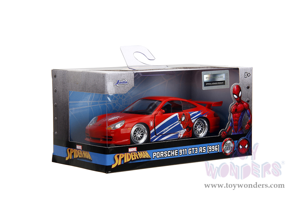 Jada Toys - Hollywood Rides | Marvel Spider Man Porsche 911 GT3 RS (996) (1/32 scale diecast model car, Red) 36068