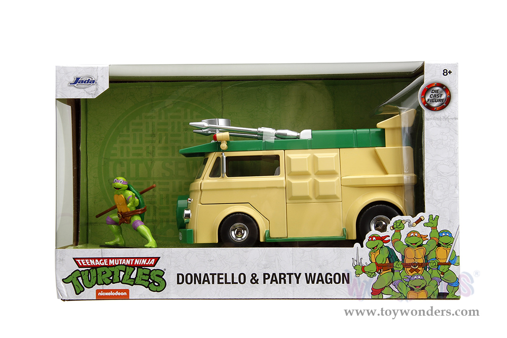Jada Toys - Hollywood Rides | Party Wagon with Donatello Diecast Figure "Teenage Mutant Ninja Turtles" (1/24, diecast model car, Green/Beige) 34529