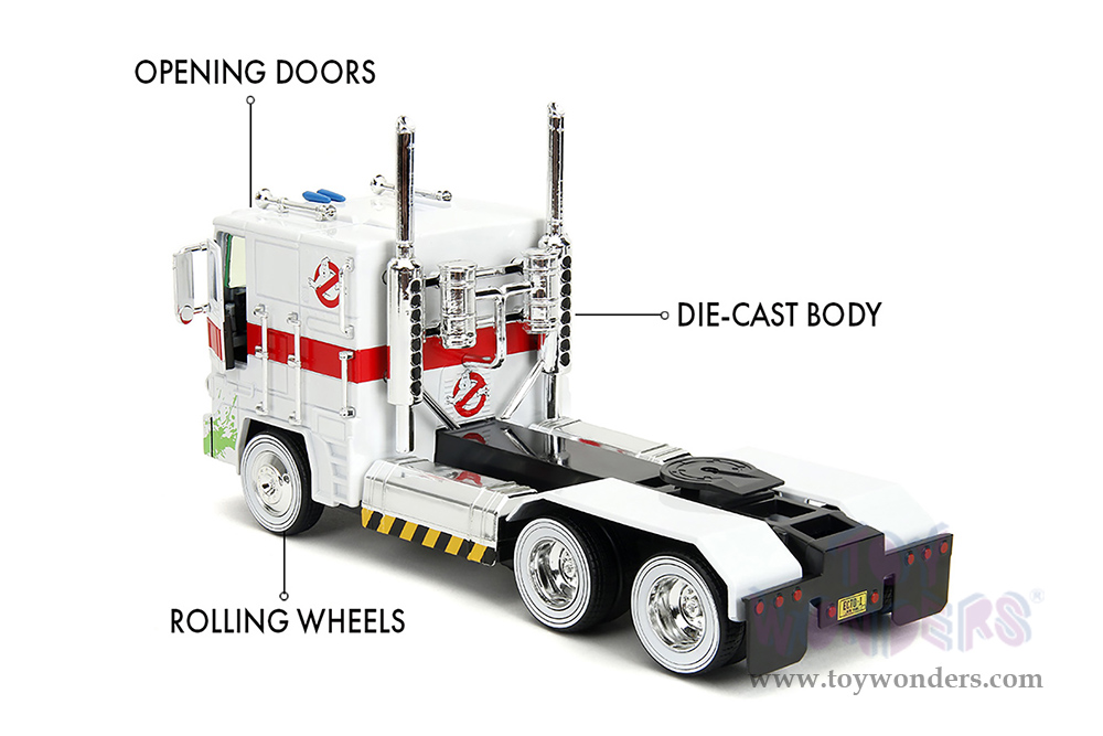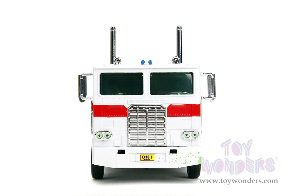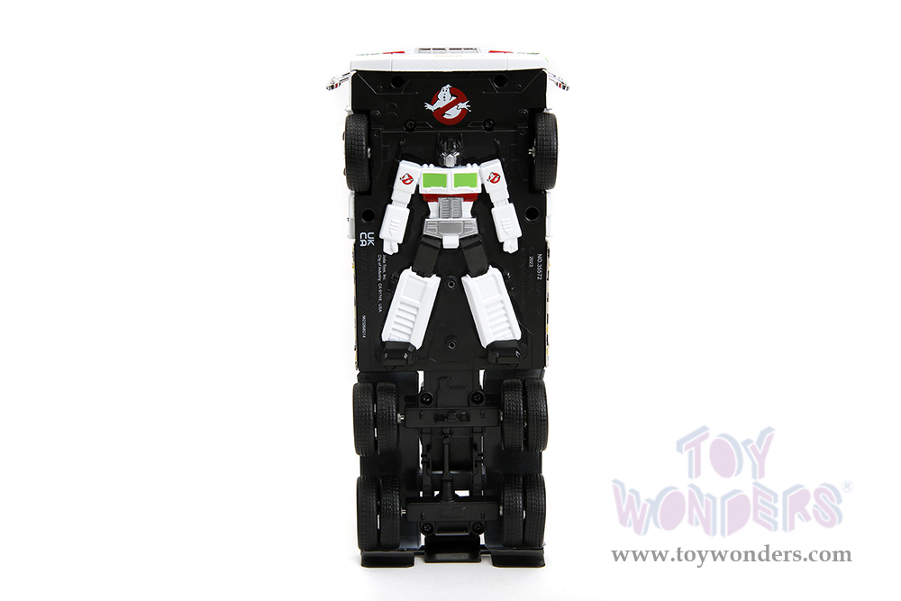 Jada Toys - Hollywood Rides | TRANSFORMERS G1 Optimus Prime® Truck Ghostbusters Ecto-1 Crossover (1/24, diecast model car, White) 35572