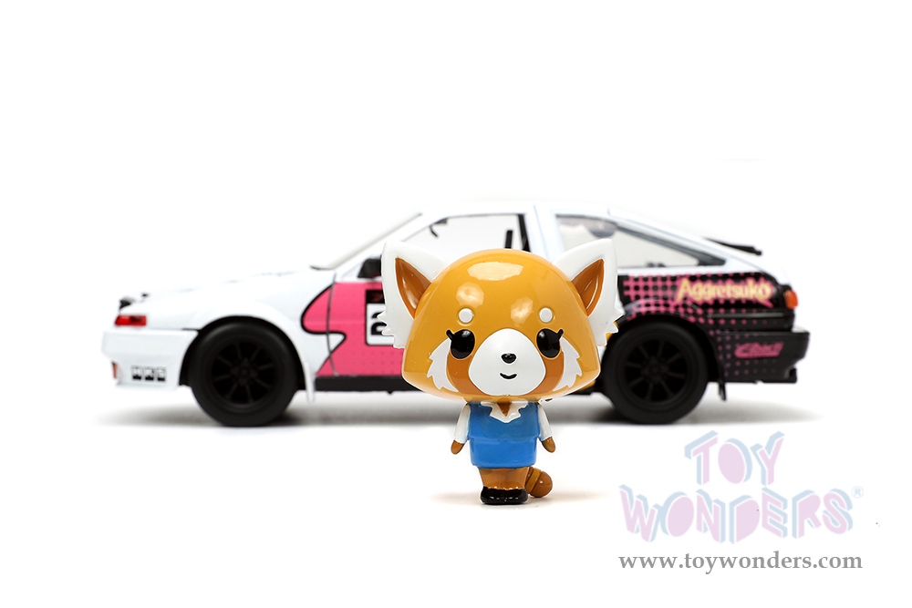 Jada Toys - Hollywood Rides | Toyota Trueno (AE86) with Aggretsuko Figure (1986, 1/24, diecast model car, White/Pink) 33725