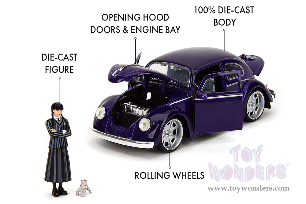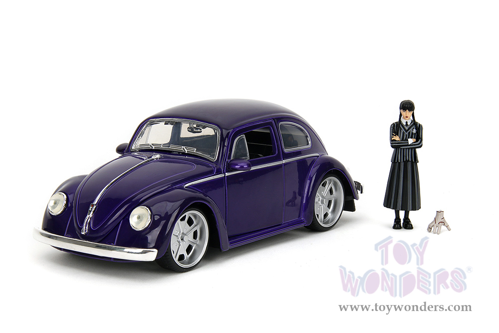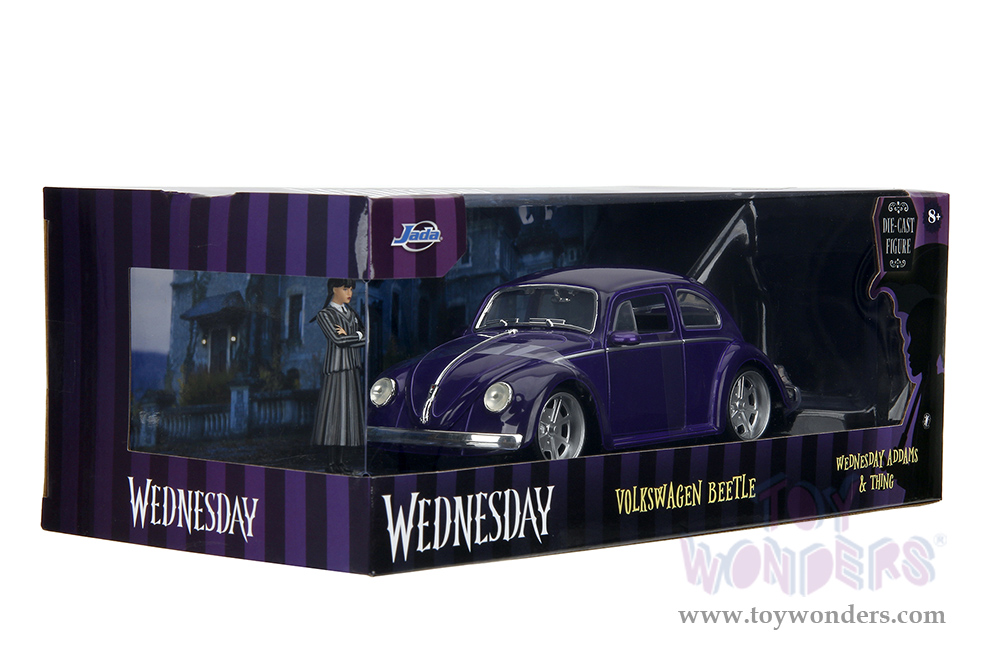 Jada Toys - Hollywood Rides | Volkswagen Beetle with Wednesday Addams and Thing Diecast Figures (1/24, diecast model car, Purple) 35131