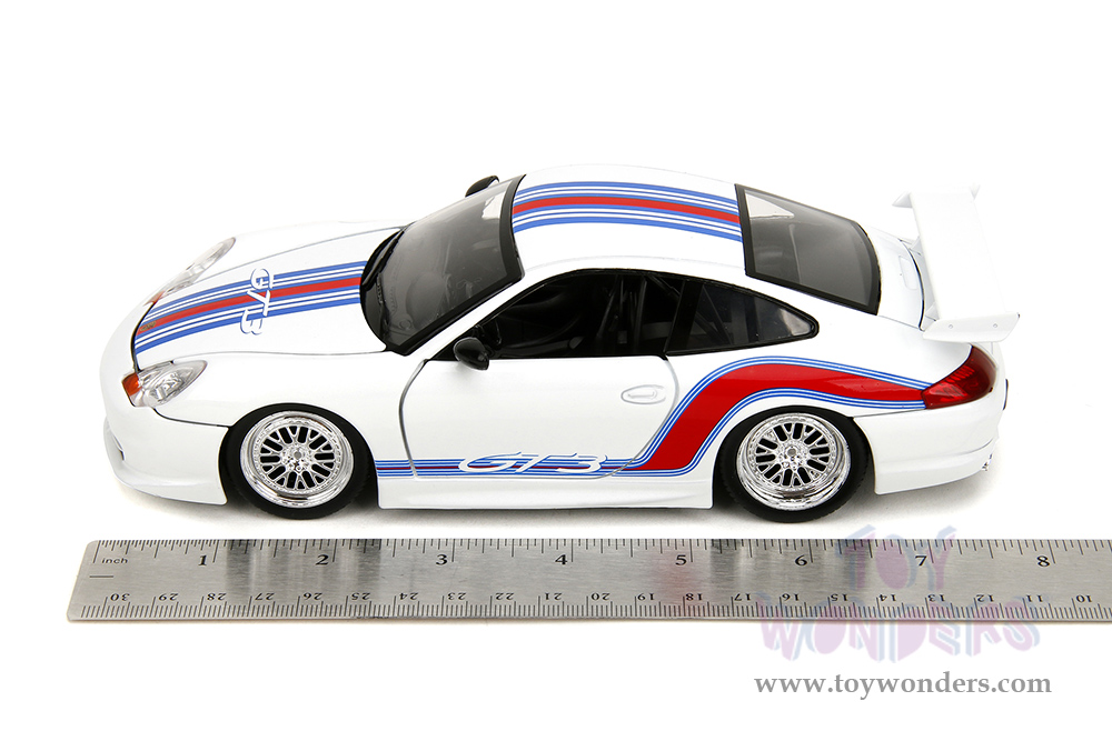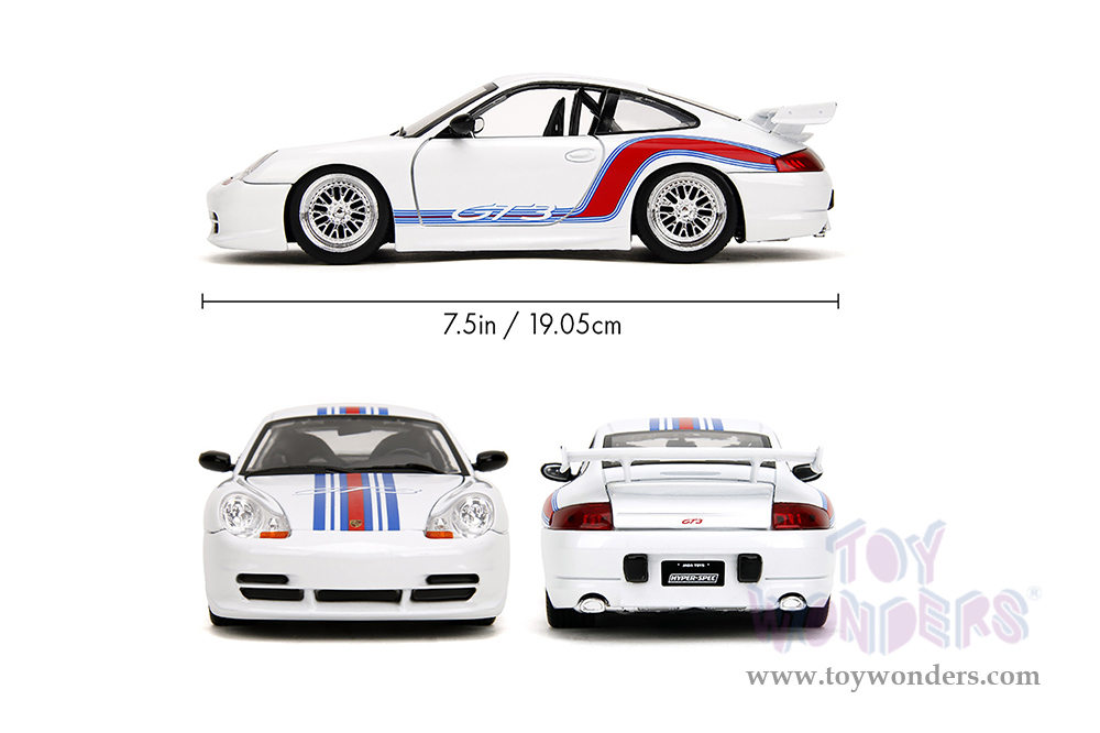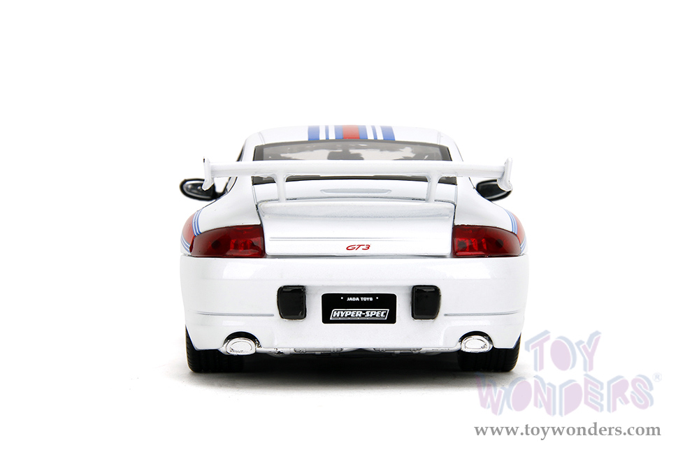 Jada Toys Hyper-Spec - Porsche 911 GT3 (996) (1/24, diecast model car, White/w Red and Blue Stripes) 35491