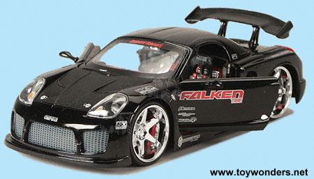 50855BP Import Racer! Toyota MR2 Spyder. 1:24 scale diecast model car. This Toyota MR-2 is a 7" long x3"W x2"H diecast sports car with opening doors/hood/trunk, street racer styling, sound system installation, and ALT Rival rims. This Toyota tuner/sports car is manufactured by Jada Toys. 4 pcs per display box. 50855 in assorted colors. 16 pcs per inner box.