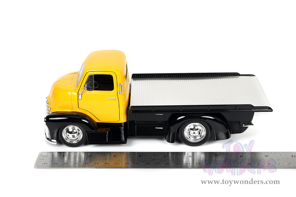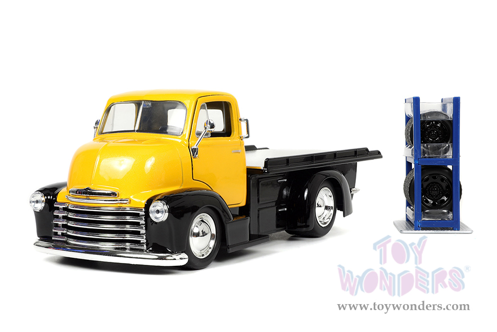 Jada Toys Just Trucks - Chevrolet® COE Flatbed Tow Truck with Extra Wheels (1952, 1/24 scale diecast model car, Black/Yellow) 33848