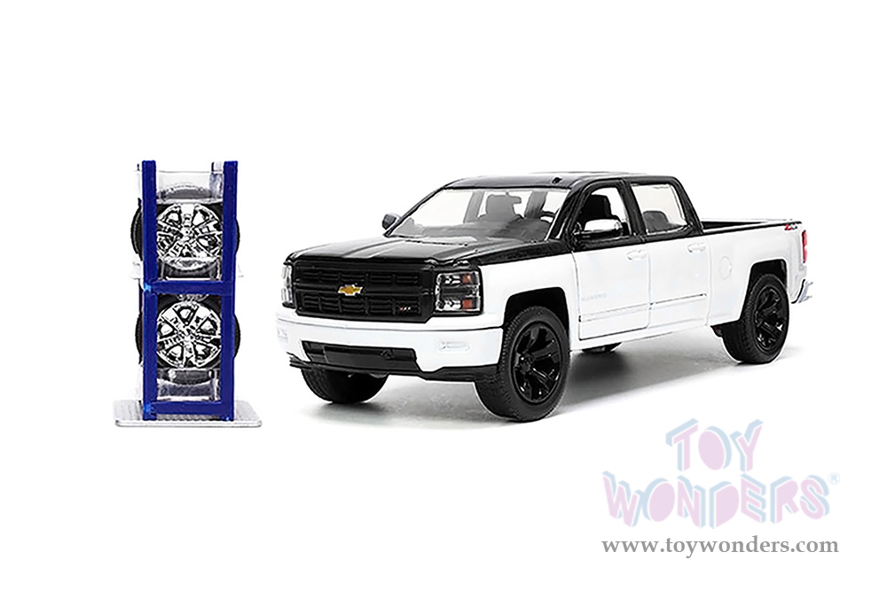 Jada Toys Just Trucks - Chevrolet® Silverado™ Z71 Pickup Truck with Extra Wheels (2014, 1/24 scale diecast model car, White/Black) 33850