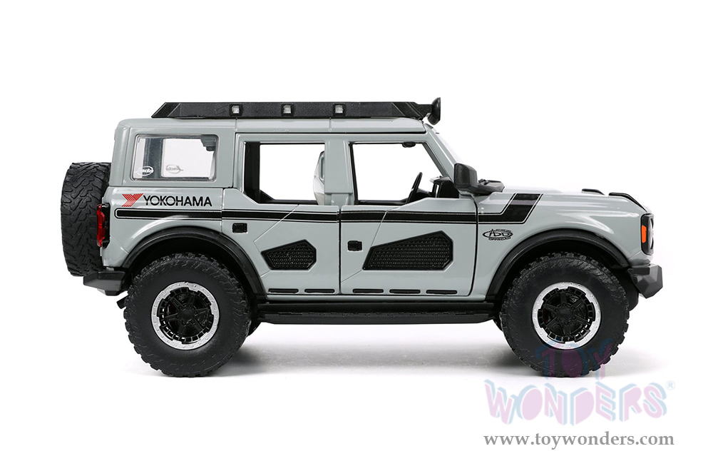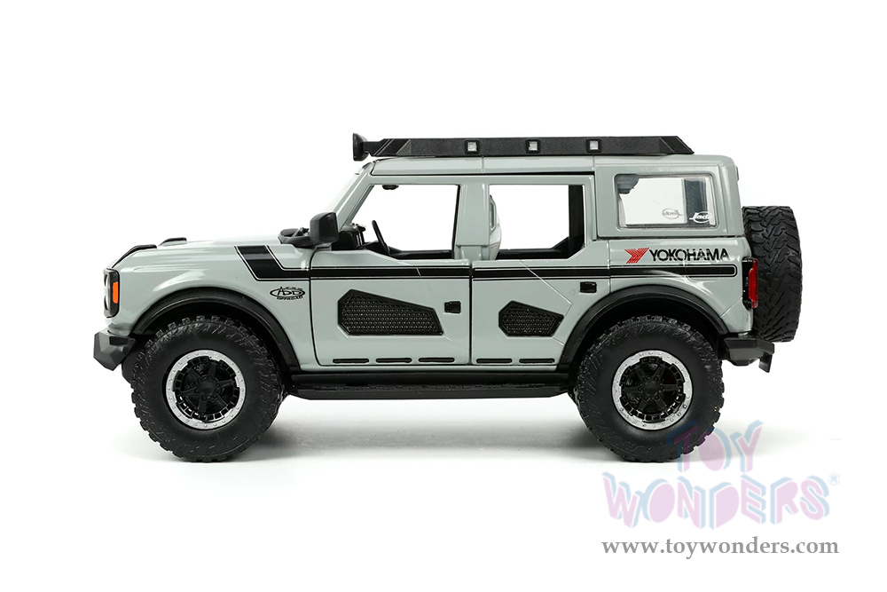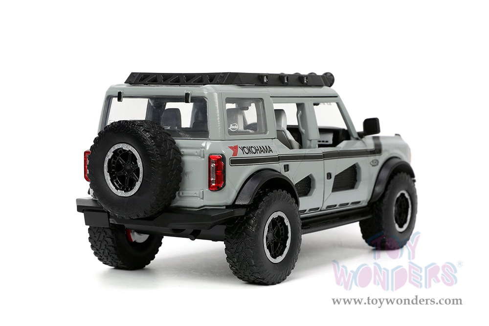 Jada Toys Just Trucks | Ford Bronco Hardtop "Own the Night" Yokohama (2021, 1/24 scale diecast model car, Gray/Black stripes) 33300