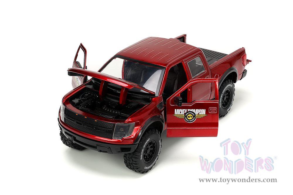 Jada Toys Just Trucks - Ford F-150 SVT Raptor Pickup Truck "Mickey Thompson Tires & Wheels" with Extra Wheels (2011, 1/24 scale diecast model car, Candy Red) 33854