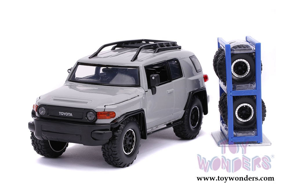 Jada Toys Just Trucks - Toyota FJ Cruiser with Roof Rack and Extra Wheels (1/24 scale diecast model car, Gray) 31557