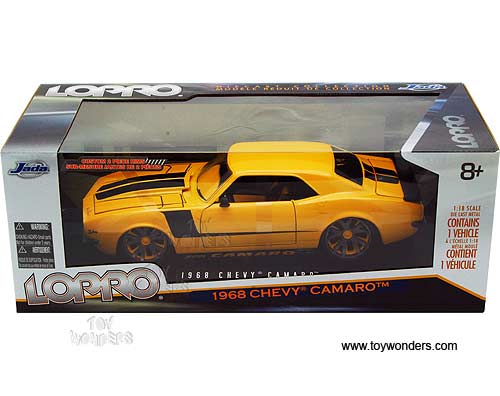 Jada Toys LoPro - Chevy Camaro Hard Top (1968, 1/18 scale diecast model car, Yellow w/ Black Stripes) 96625