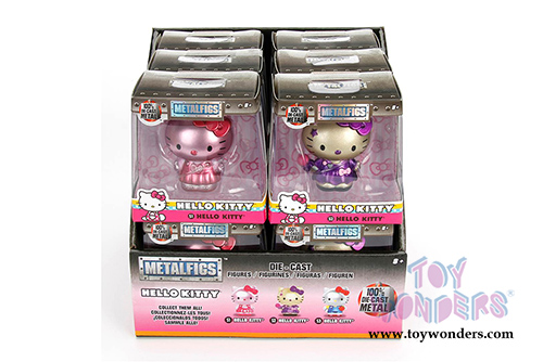 84400W1 Jada Toys - Metalfigs | Hello Kitty® Assortment Figure. Hello Kitty® by Sanrio® diecast collectible model toy. This Kitty figure is 2.5" high 100% diecast metal toy figure. Hello Kitty assortment is manufactured by Jada Toys. Individually packed in a window box. Window Box is 3.25"L x 2"W x 3.25"H. Item 84400W1 is in assorted colors.