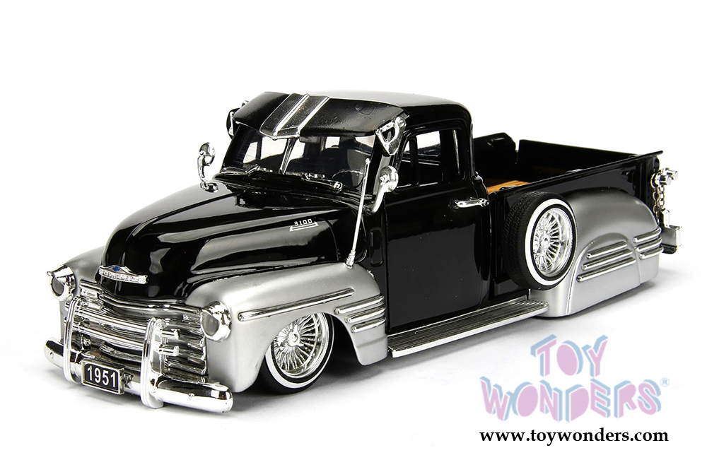 97229WA1 Jada Toys - Metals Die Cast Just Trucks | 1951 Chevy® Pick Up. 1:24 scale diecast collectible model car. This Chevrolet® is an 8.5"L x 3.25"W x 2.75"H die cast car with openable doors, hood & tailgate. This Chevy® Truck is manufactured by Jada Toys. Item 97229WA1 is in assorted colors. Individually packed in a window box. Box size: 10"L x 4.75"W x 4.75"H. 6 pcs per inner.