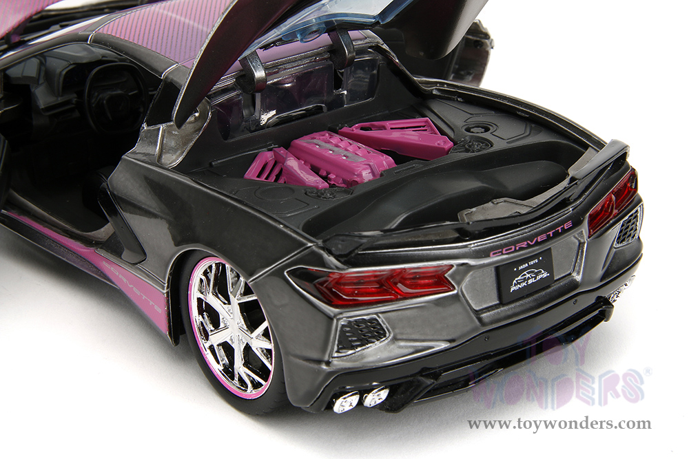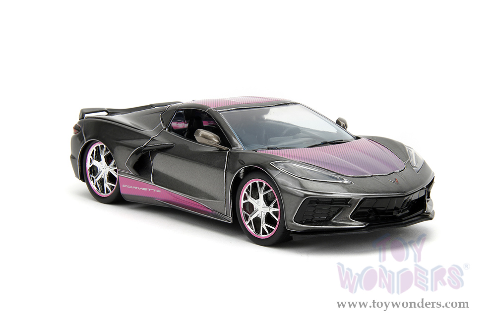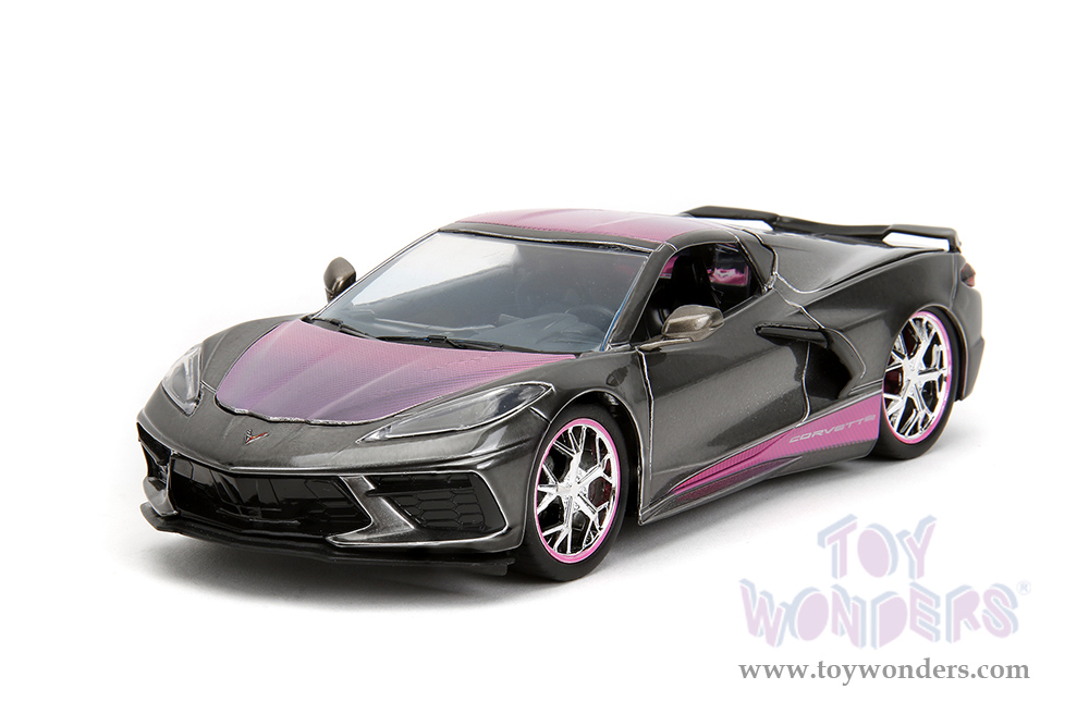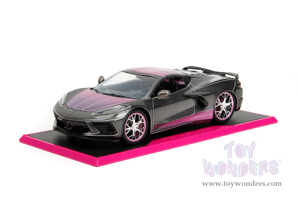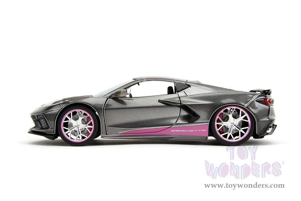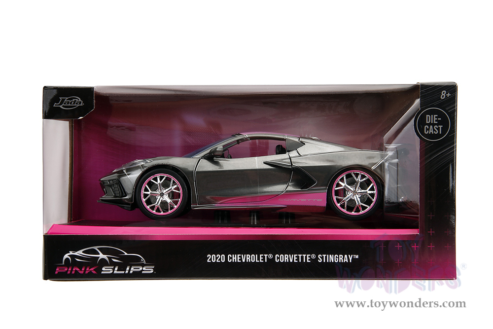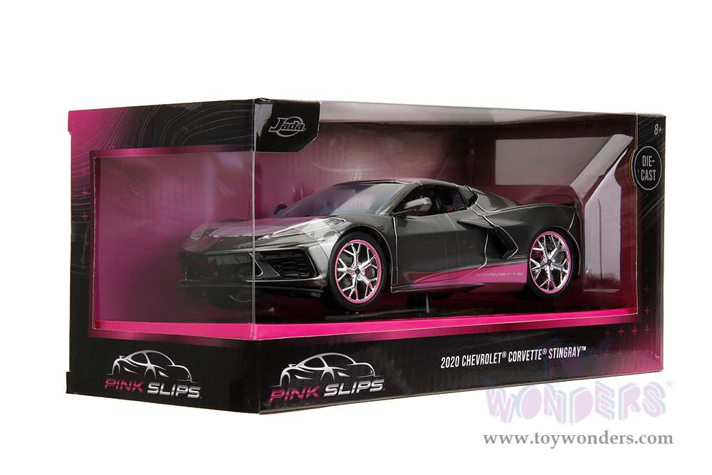 Jada Toys Pink Slips - Chevrolet® Corvette® Stingray™ with Display Base (2020, 1/24 scale diecast model car, Metallic Gray/Pink) 34848