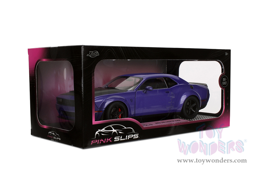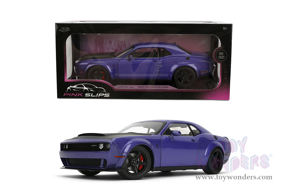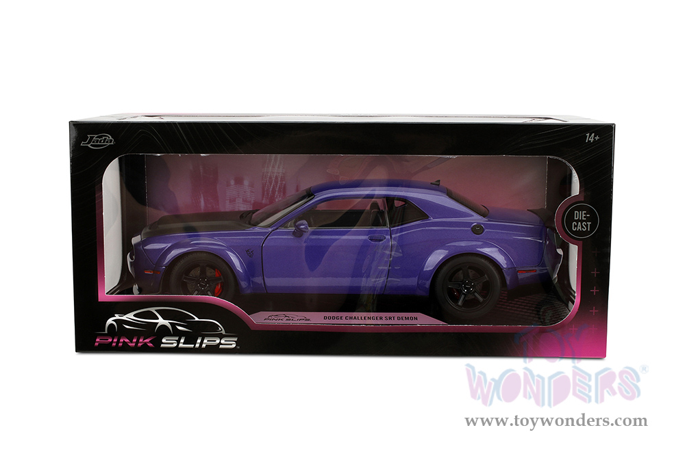 Jada Toys Pink Slips - Dodge Challenger SRT Demon with Display Base (1/18 scale diecast model car, Purple/Black) 36473