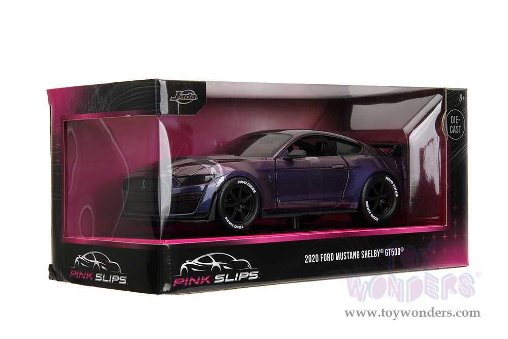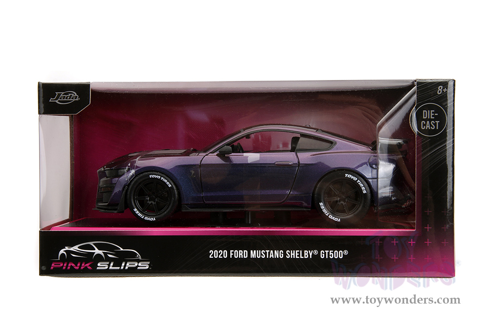 Jada Toys Pink Slips - Ford Mustang Shelby® GT500® with Display Base (2020, 1/24 scale diecast model car, Iridescent Purple-Blue) 34894
