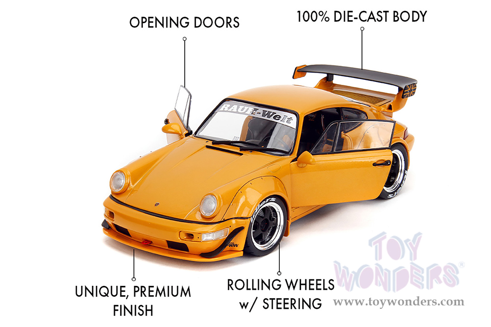 Jada Toys Pink Slips - Porsche RWB Body Kit Hibiki with Display Base (2016, 1/18 scale diecast model car, Glossy Orange) 36383