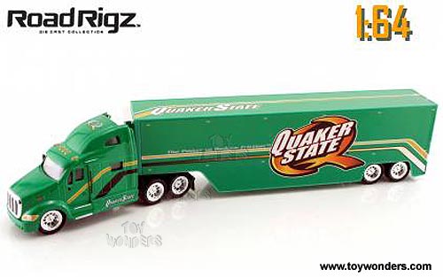 Jada Toys Quaker State Road Rigz - Peterbilt 387 Tractor Trailer Truck (1/64 scale diecast model car, Green) 91516
