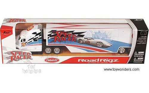 Jada Toys Road Rigz Speed Racer - Peterbilt 387 Hauler Tractor Trailer (1/64 scale diecast model car, White) 91895