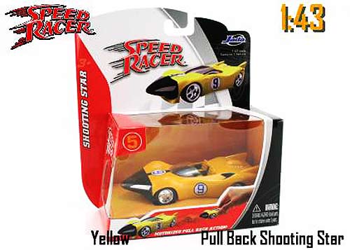83131 Jada Toys Speed Racer Assortment. 1:43 scale diecast model car. These race cars are 4" long die cast metal with pullback motor action. Each car individually blister carded. Card size is 5.5"L x 2.5"W x 6"H. These Speed Racer are manufactured by Jada Toys. Assortment includes: