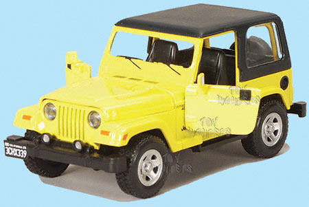 95031 Jeep Wrangler. 1:24 scale. This Jeep Wrangler is a 6.5" long diecast SUV with opening doors/hood. This off-road vehicle is free-Wheeling. 4 pcs per display box and in assorted colors.