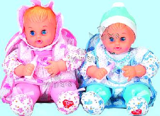 95045K/24 Joe & Judy 12" singing dolls strapped onto a zipper backpack with inner compartment for storage. Requires 2 "AA" batteries. Assorted styles. 6 pcs/display.