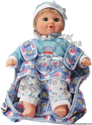 20523CKM Joe and Judy. 12" Soft vinyl musical baby girl doll with backpack. Box size: 21"L x 8.5"W x 12.5"H. 8 pcs/display. Musical doll.