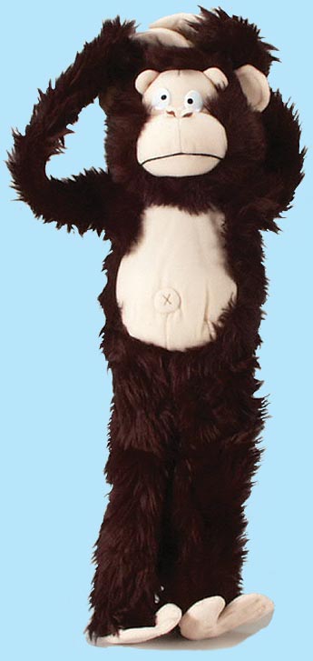 10681H Juggy Monkey. 18"Long monkey that when squeeze his leg, he laughs, sings & swings. Hang him anywhere or wrap him around your neck. Also sound activated. 3 "AA" batteries included. 10681 in BROWN color.