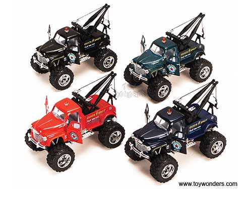 5333D Kinsmart - 1953 Chevrolet 3100 Wrecker (Off Road). 1:38 scale diecast collectible model car. This big wheel Chevy tow truck is a 5.25"L x 3"W x 3.75"H die-cast metal with openable doors & pullback motor action. This Chevy tow truck is manufactured by Kinsmart. GM is a trademark of the General Motors Corporation. 12 pcs per display box and in assorted colors. 36 pcs per inner box. Z8