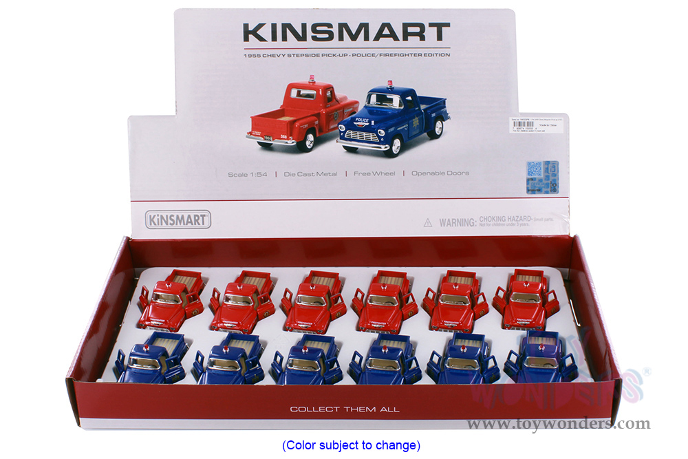 Kinsmart - Chevy® Stepside Pickup Truck Police/Firefighter Edition (1955, 1/54 scale diecast model car, Asstd.) 3002DPR