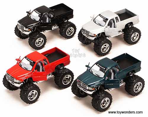 5338D Dodge Ram (Off Road) Pick-Up truck. 1:44 scale diecast collectible model car. This big wheel Dodge Ram pickup is a 4.75"L x 3"W x 2.75"H die-cast metal car with openable doors and tailgate, pullback motor action. This Dodge Ram off-road pick up is manufactured by Kinsmart. 12 pcs per display box in assorted colors. 48 pcs per inner box. Z8