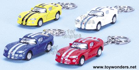 2531DK Dodge Viper key chains Scale: 1:72 Dodge Viper 2.5"L die cast metal key chain with pullback motor action. Manufactured by Kinsmart 12 pcs per display box in assorted colors 72 pcs per inner box