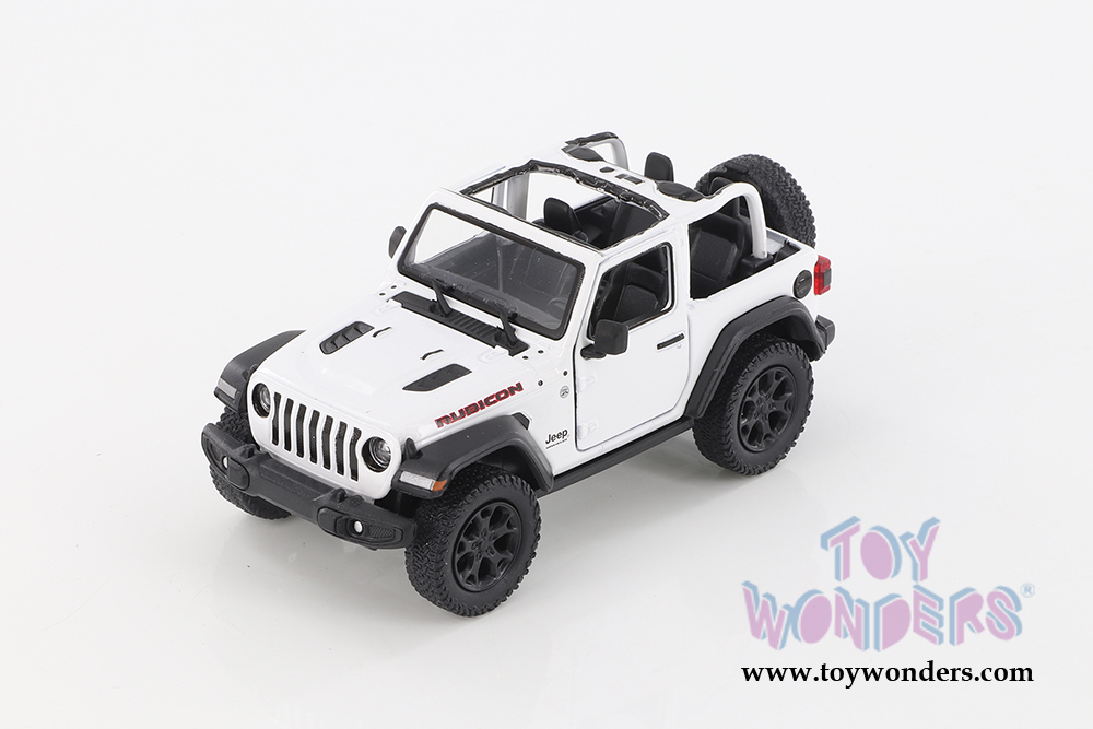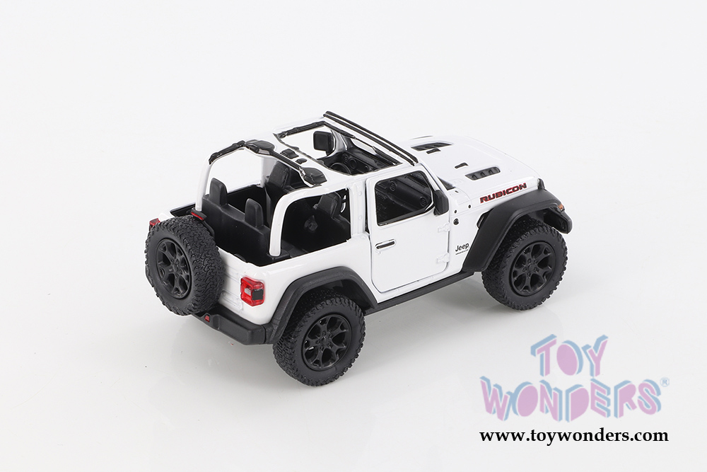 5412DA/WT Kinsmart - 2018 Jeep® Wrangler Rubicon Open Top. 1:34 scale diecast collectible model car. This 2018 Jeep® Wrangler is a 5"L x 2.25"W x 2.25"H diecast metal collectible car features opening doors and pullback motor action. Manufactured by Kinsmart. 12 pcs per display box in black. 72 pcs per inner box.