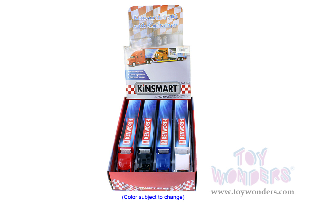 Kinsmart - Kenworth® T700 Tractor with Container (13", 1/68 Scale diecast model car, Asstd.) 1302D