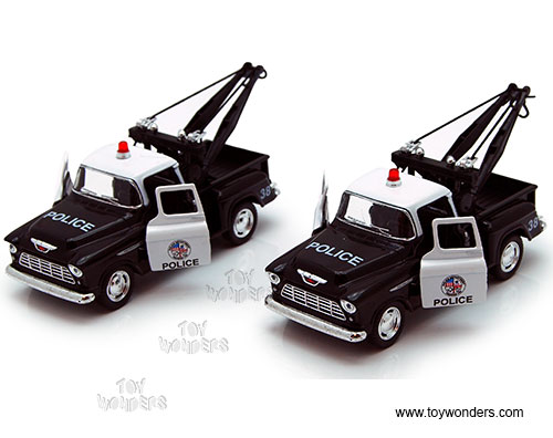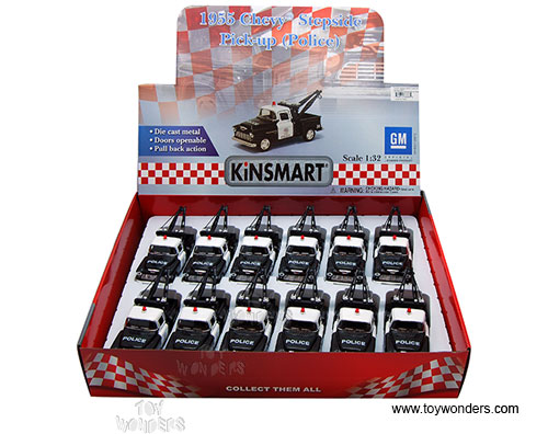 Kinsmart - Police Chevy Stepside Pickup (1955, 1/32 scale diecast model car, Black & White.) 5330DP