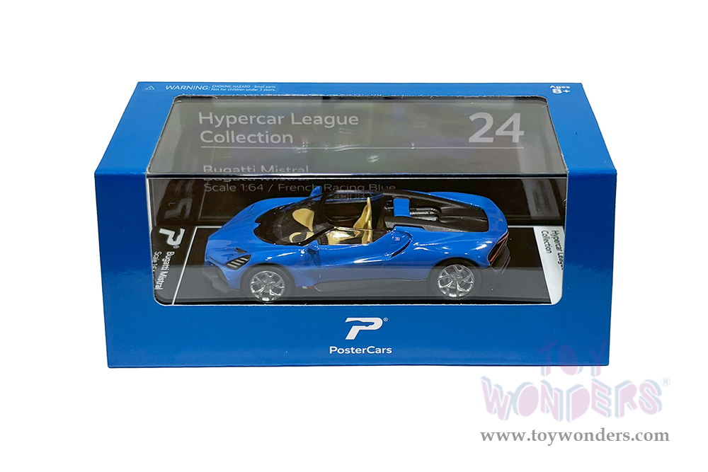 Kinsmart - PosterCars Hypercar League Collection | Bugatti Mistral (1/64 Scale diecast model car, French Racing Blue) H24