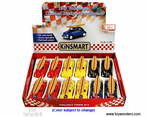Kinsmart - Volkswagen Beetle Hardtop w/ Surfboard (1967, 1/32 scale diecast model car, Asstd.) 5057DS